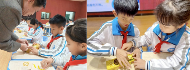 在动手制作“炫彩八音琴”过程中,创客教育分会梁老师全程指导,协助学生解决组装与调试中遇到的问题,引导学生掌握“观察—假设—验证—总结”的科学方法,并传递“勇于试错、严谨求真”的科学精神。24名学生代表在讲台前参与制作,现场互动积极,讨论热烈,有效提升了学生的动手能力与协作意识。